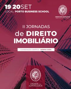 Antes, a 19 e 20 de setembro, a Delegação de Matosinhos da Ordem dos Advogados promoveu as “II Jornadas de Direito Imobiliário”, com coordenação científica de Olímpia Costa, e que se realizaram na Porto Business School, com a presença de João Massano, Bastonário da Ordem dos Advogados.