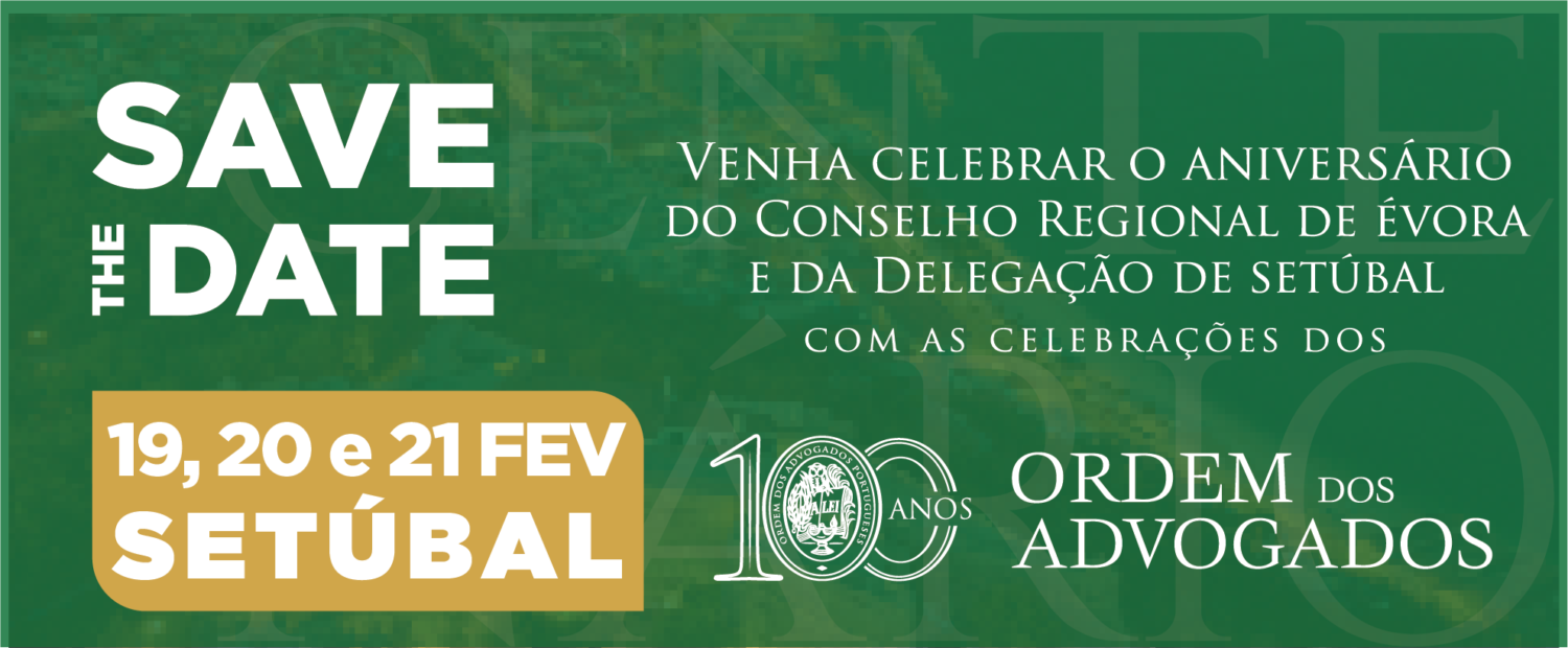 Convidamos todos os Advogados e Advogados Estagiários a juntarem-se a nós numa cerimónia que assinala o passado, o presente e o futuro da Ordem dos Advogados - os 100 Anos da Ordem, os 52 do Conselho Regional de Évora e os 25 da Delegação de Setúbal.